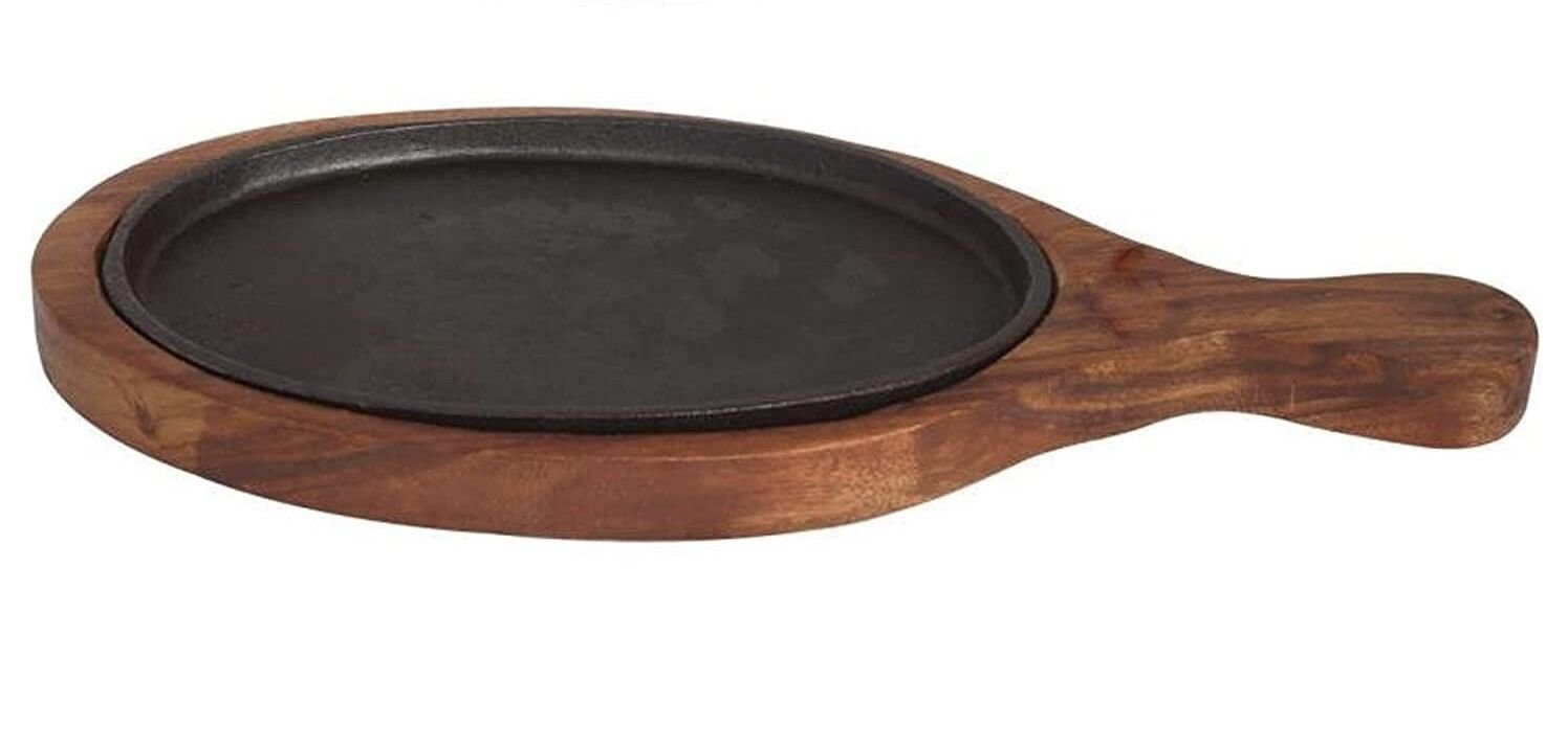 LP-Sizzler Tikka Platte (S) Runde Holzbasis Schwer Gemischter Grill Fleisch Fisch Gemüse